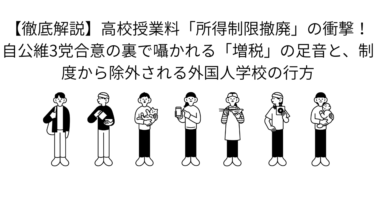 現在、豊島区のように自治体レベルで外国人学校の生徒保護者に対し、月額6,000円といった独自の補助金を交付している例もあるが、国の制度から外れる影響は大きい。 グローバル化が進む現代において、多様な背景を持つ子供たちの教育をどう支えていくのか。今回の制度設計は、日本社会の懐の深さが問われる重要な論点となるだろう。