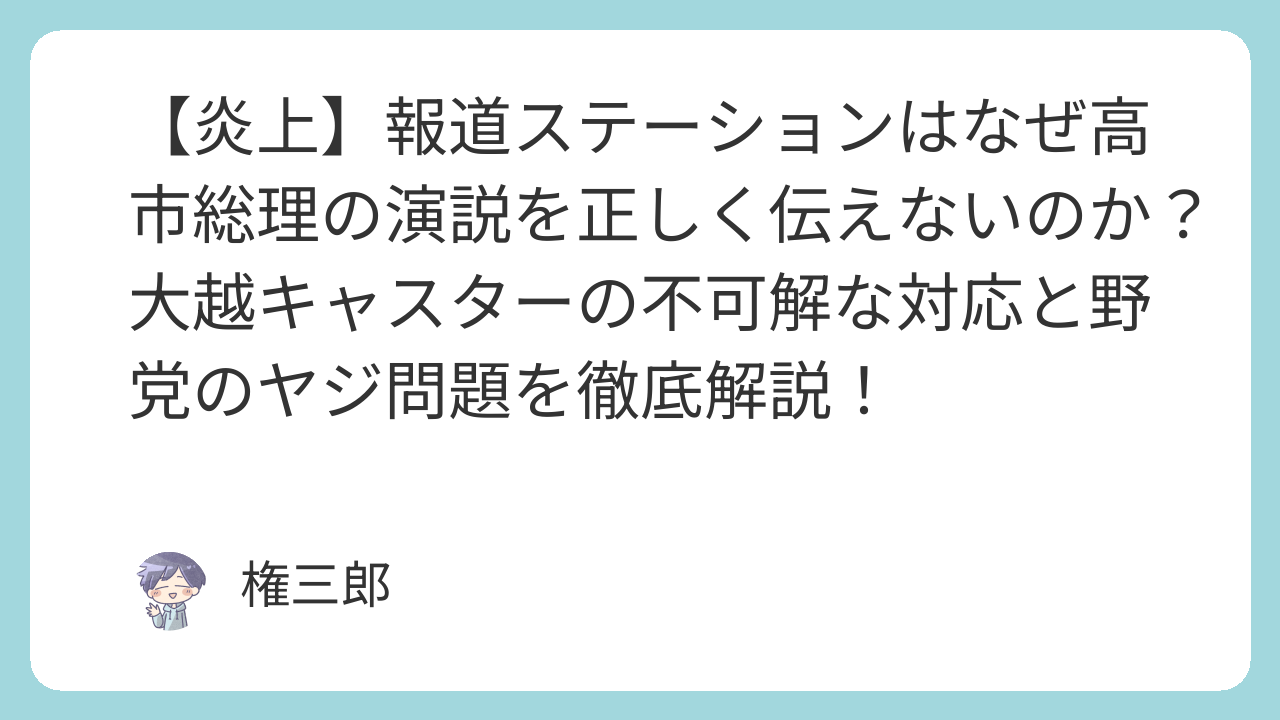 【炎上】報道ステーションはなぜ高市総理の演説を正しく伝えないのか?大越キャスターの不可解な対応と野党のヤジ問題を徹底解説!