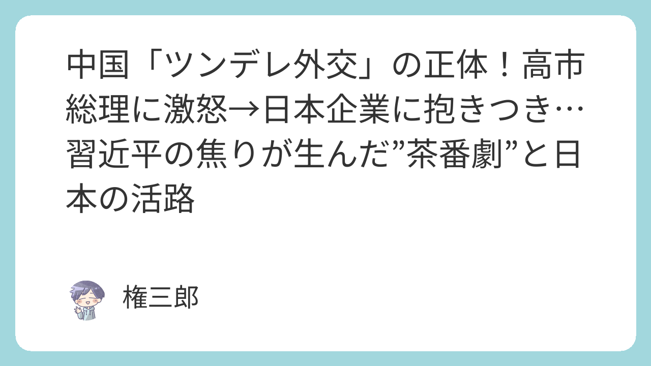 近年の中国の外交姿勢を象徴するこの常軌を逸した「ツンデレ外交」が、今、世界中の失笑と、それ以上に深い不信感を招いている。その滑稽かつ危険な二面性を、白日の下に晒したのが、日本の高市早苗総理の「台湾有事」発言をめぐる一連の騒動であった。