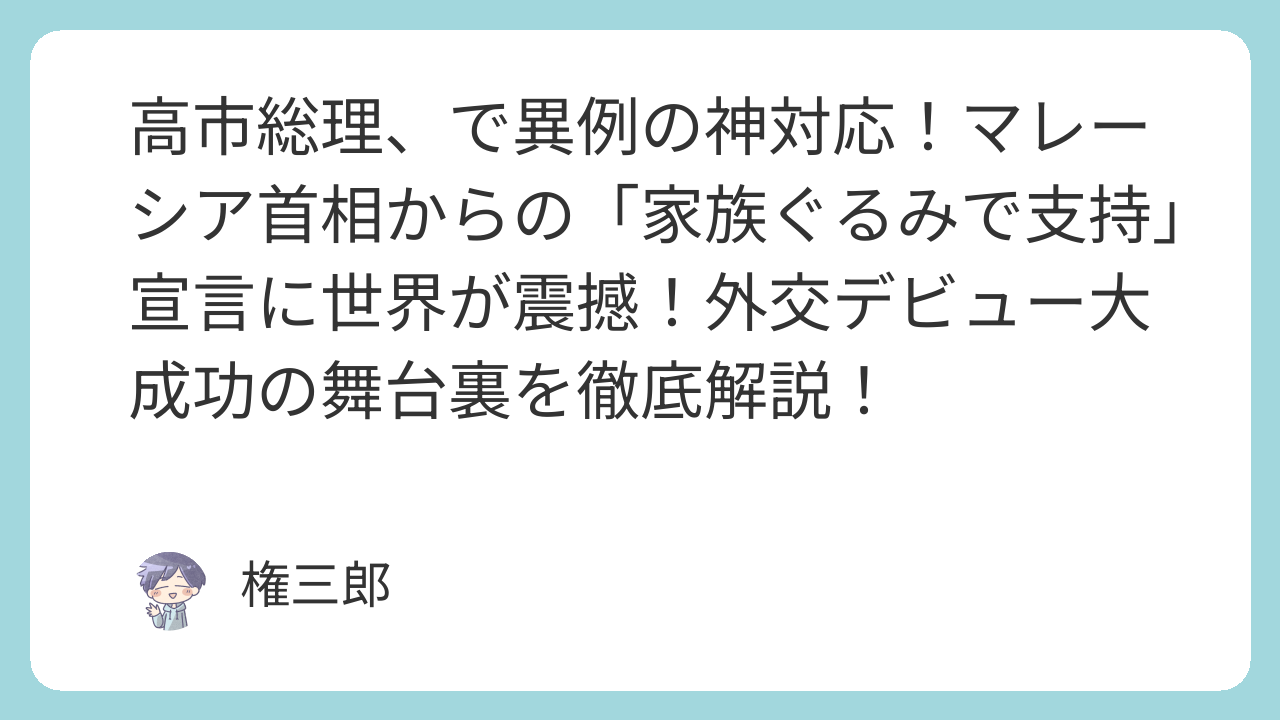 本記事では、この歴史的な外交デビューの全貌を、徹底的に深掘りします。なぜアンワル首相は、これほどまでの歓迎をしたのか?その裏にあるマレーシアとの深い関係とは?そして、高市総理が見せた日本の新たな外交スタイルが、国際社会にどのような衝撃を与えたのか。ネット上の熱狂的な反応から、各国の専門家の分析まで、あらゆる角度からこの歴史的瞬間を解き明かしていきます。