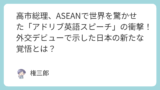 これらの提案は、ASEAN各国からも歓迎され、日本のリーダーシップに対する期待の高まりを示すものとなりました。