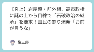 【炎上】岩屋毅・前外相、高市政権に謎の上から目線で「石破政治の継承」を要求!国民の怒り爆発「お前が言うな」