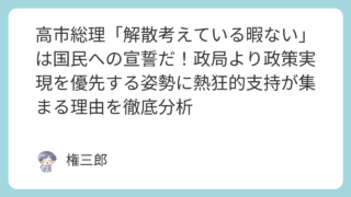高市総理「解散考えている暇ない」は国民への宣誓だ!政局より政策実現を優先する姿勢に熱狂的支持が集まる理由を徹底分析