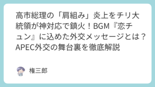 高市総理の「肩組み」炎上をチリ大統領が神対応で鎮火!BGM『恋チュン』に込めた外交メッセージとは?APEC外交の舞台裏を徹底解説