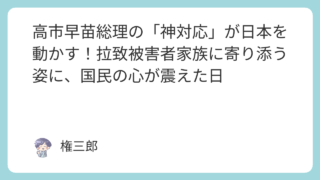 高市早苗総理の「神対応」が日本を動かす!拉致被害者家族に寄り添う姿に、国民の心が震えた日