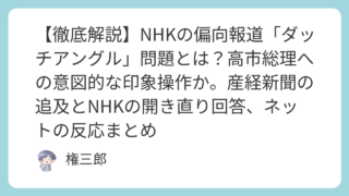 政治【徹底解説】NHKの偏向報道「ダッチアングル」問題とは?高市総理への意図的な印象操作か。産経新聞の追及とNHKの開き直り回答、ネットの反応まとめ