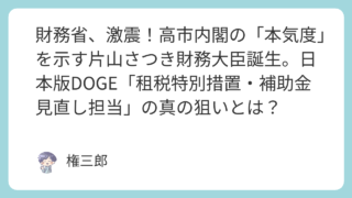 財務省、激震!高市内閣の「本気度」を示す片山さつき財務大臣誕生。日本版DOGE「租税特別措置・補助金見直し担当」の真の狙いとは?