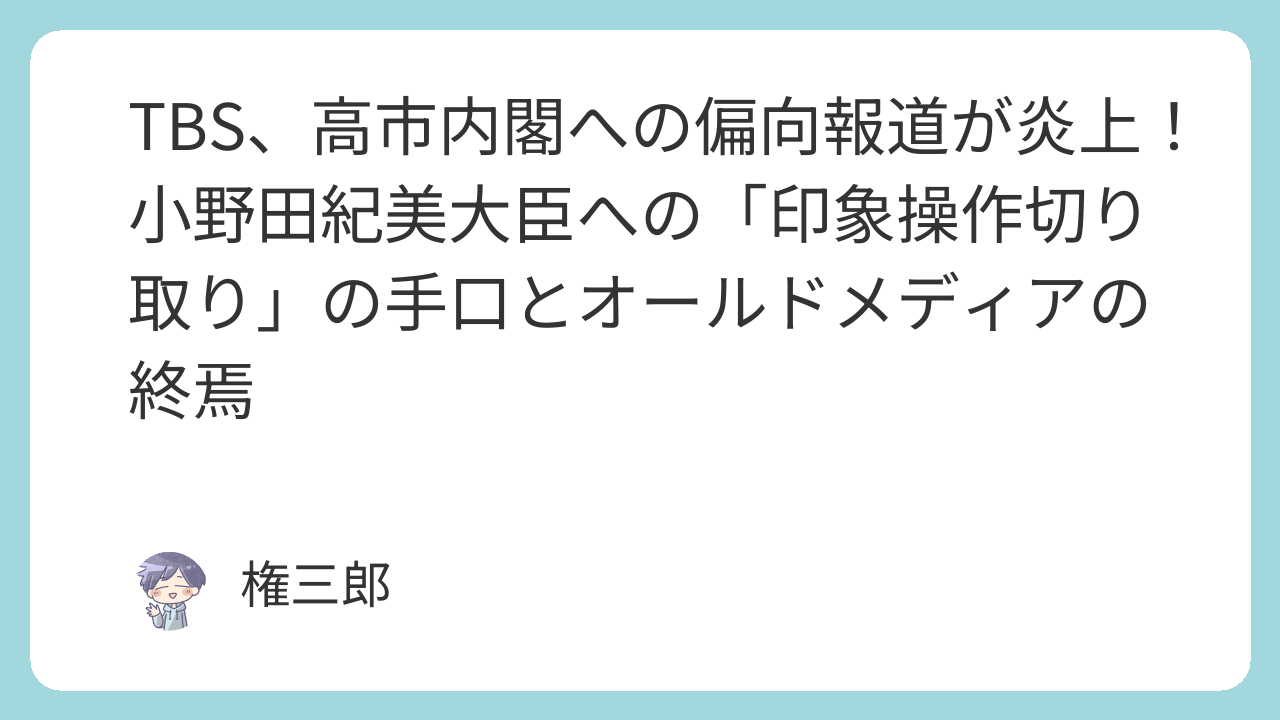 国民は、メディアが自分たちの意に沿わない政治家の発言を都合よく切り取り、文脈を無視して報道する「切り取り」が常套手段であることを知っています。今回の件も「またいつもの手口か」と冷静に受け止められ、TBSが意図したような小野田大臣へのネガティブな印象形成には繋がりませんでした。 - 印象操作が「逆効果」になる時代: